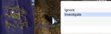 - Potrebujete prozkoumat ostrov, je na nem nekolik neviditelnych NPC, jedno zapadne od doku a druhe kousek nad stredem, ale jejich spusteni neni nutne. Kliknete na Dead Crow (nameless_i 125,205) a prozkoumejte jej (moznost Investigate) Budete napadeni a uspani.